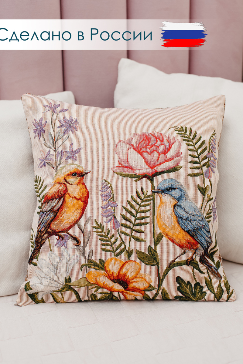 Наволочка декоративная 38х38 Птицы