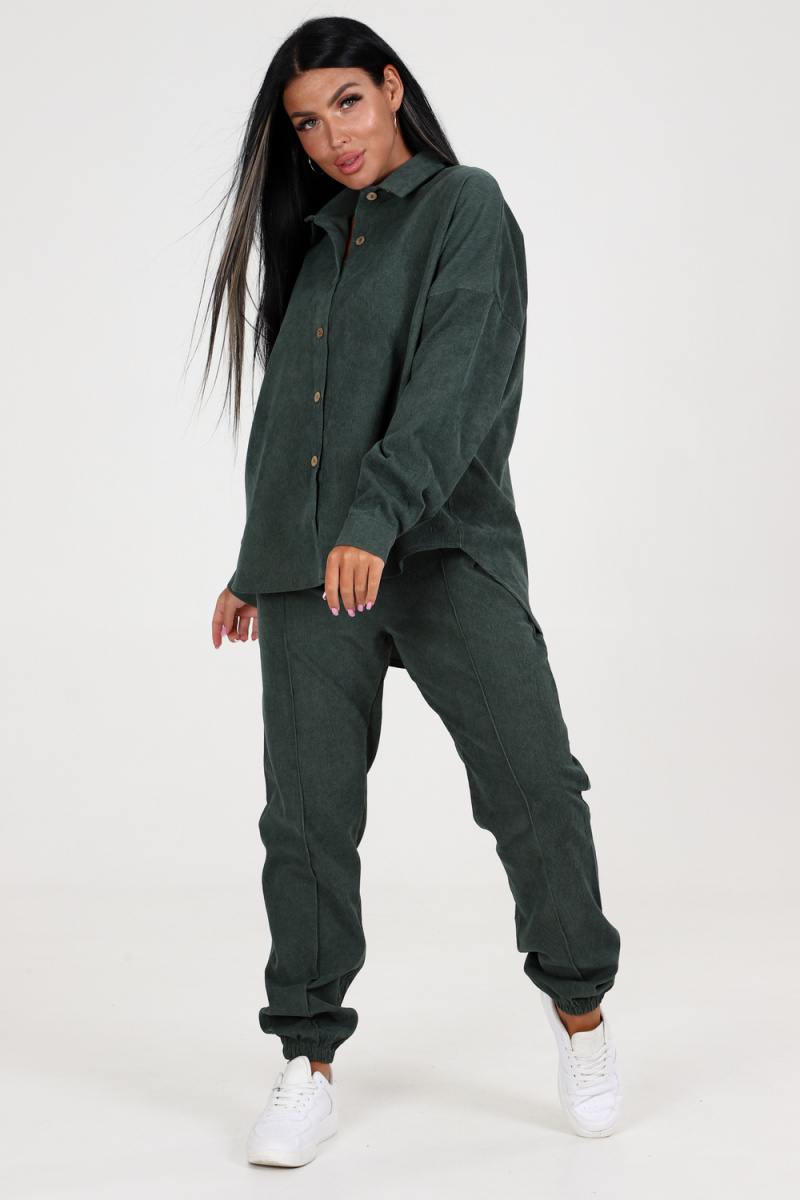 Женский костюм двойка - идеальный выбор для стильных и уверенных в себе женщин. Костюм состоит из брюк и туники рубашечного типа, которая застегивается на пуговицы. Туника украшена накладным карманом и имеет рукава на манжетах. Классический отложной воротник добавляет элегантности и выразительности к этой модели.